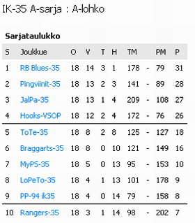 11.12.2004 | 21:00 | H:kää 1 | Rangers-35 | - | PP-94 ik35 | 3-9 |